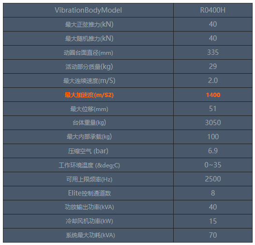 140g,40kN推力高加速度振動臺采用輕質(zhì)高強度動圈,空載加速度比標準設備提高了40%。